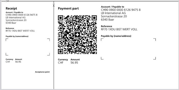 Besten Dank für deine Bestellung! Du bist fast fertig - jetzt gehts zur Kasse für die Zahlung deiner Bestellung. Zahlung Um deine Bestellung zu bezahlen, wähle eine der folgenden QR Rechnungen aus WICHTIG: Der Betrag richtet sich nach der Anzahl Kalender die du bestellt hast. Mit deinem Handy und Mobile Banking App - Nach unten scrollen, relevante QR Rechnung wählen, QR code scannen und bezahlen. ODER Mit deinem PC/Laptop im E-Banking einloggen Nach unten scrollen, relevante QR Rechnung wählen, QR Rechnung im E-Banking die Zahlungsangaben manuell erfassen und bezahlen. In deiner Mailbox wartet eine Email auf dich mit weiteren Informationen auch bezüglich dem Versand deiner Bestellung. | ||